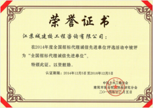 2014年度“全国招标代理诚信先进单位”